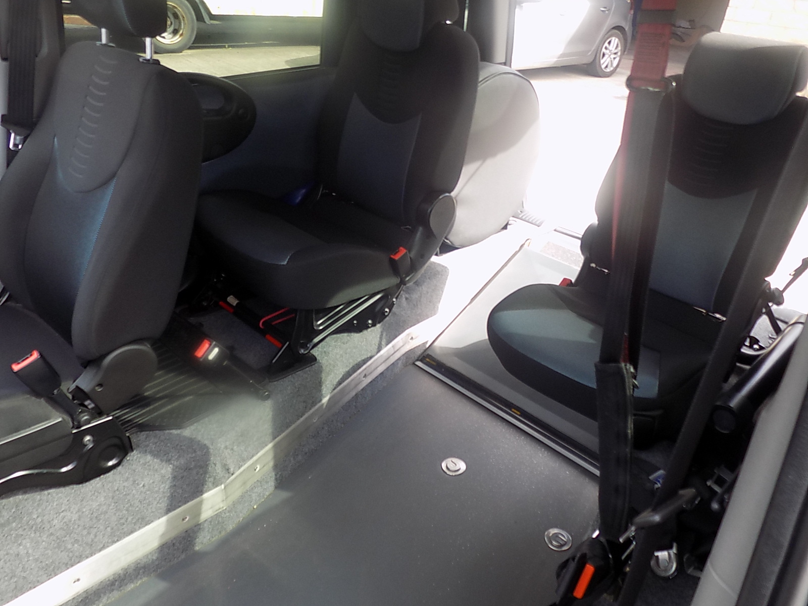 This Particular Wheelchair Accessible Vehicle Is A Rare Up Front Passenger Vehicle With Full Length Lowered Floor, Manually Operated Wheelchair Ramp And Wheelchair Securing Straps And 3 Point Safety Belt. The Two Front Wheelchair Securing Straps Are Electric Belts (Which Operate Via An On/ Off Switch ). When On, The Belts Freewheel To Attach To The Front Of The Wheelchair, Then Switch Off And They Operate A Ratchet System So This Stops The Wheel From Moving Backwards An Added Safety Measure. This Is A Sought After Conversion Due To Its Nature Of Being An Up Front Passenger Vehicle. This Means That The Wheelchair User Is Situated In What Would Be The Passenger Seat Position, This Enables The Driver To Interact Easily With The Wheelchair Passenger Yet Still Retain Two Rear Seats.